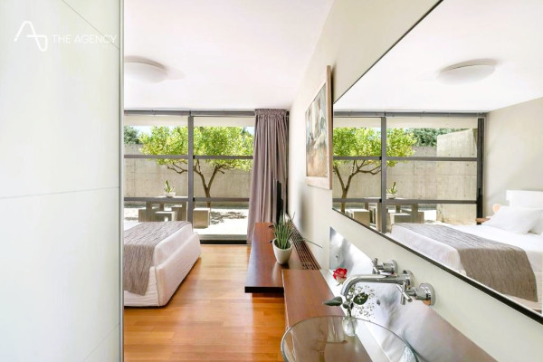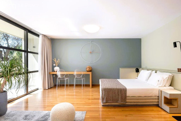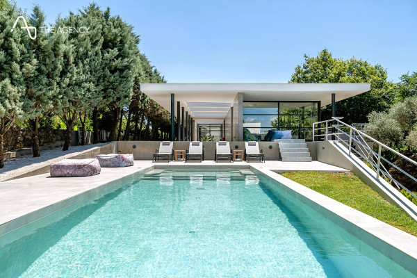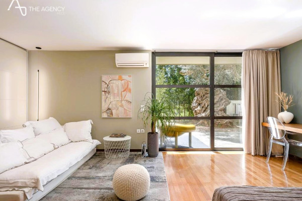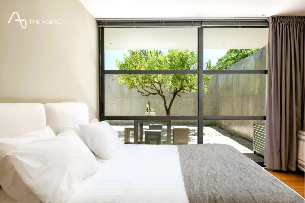 This remarkable designer villa for sale in Chania, Crete, is truly a piece of art—perfectly positioned on the outskirts of the city, just a 10-minute drive from the vibrant town center.