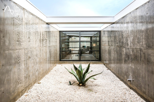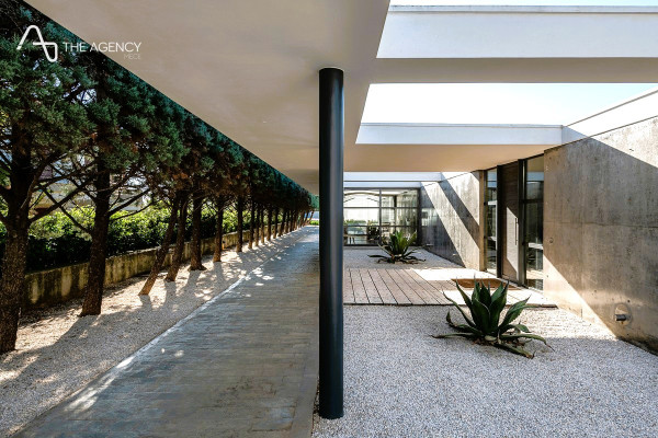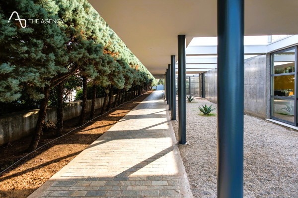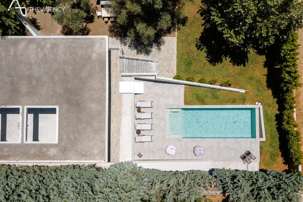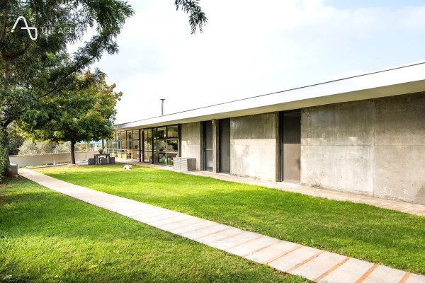 Spanning 318 m² on a generous plot of 2,140 m², this villa boasts 5 bedrooms and 3 bathrooms, all thoughtfully arranged across two levels. The construction is entirely made of concrete, without any use of bricks, creating a solid architectural statement influenced by minimalism, Japanese design, and Bauhaus philosophy. The result is an extraordinary home that embodies simplicity, elegance, and balance.