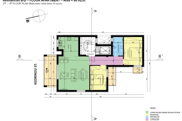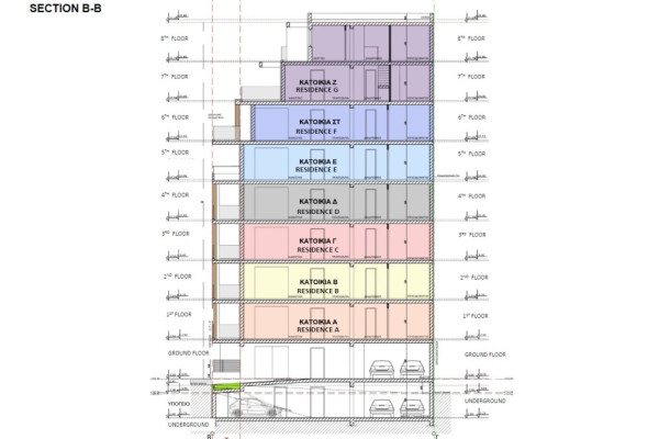 Additional properties available in the newly built apartment building: 5th floor: area of 86 sq.m., has a living room-kitchen, 2 bedrooms and a bathroom + 1 underground parking space + storage room. Selling price €360,000 - 6th floor: area 85sq.m., has a living room-kitchen, 2 bedrooms and a bathroom + 1 underground parking space + storage room. Selling price €370,000.