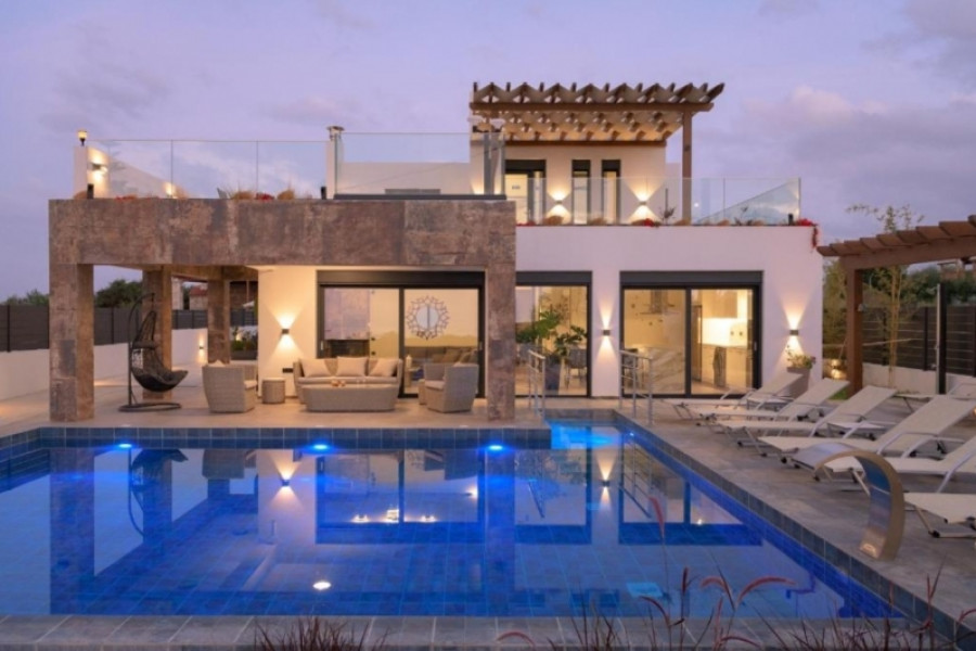 Wonderful ecological villa of 284 sq.m. on a plot of 7.5 acres, perfectly in harmony with the natural environment. An ideal residence for nature lovers, with a panoramic view of the Libyan Sea, the islands of Paximadia, Gavdos and Gavdopoula, as well as the White Mountains. The location offers unique sunsets, mesmerizing sunrises and sky free of light pollution, ideal for stargazing.