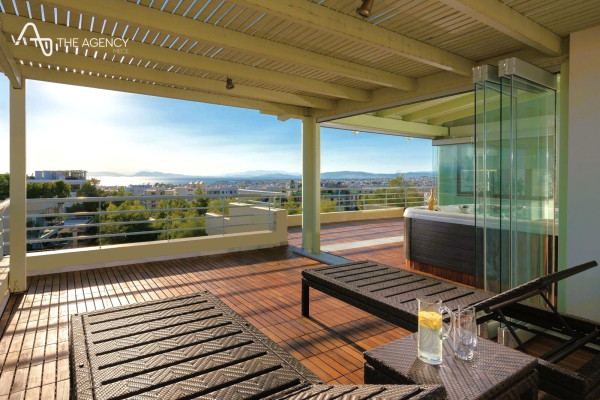 Fall in love with the heart of Voula with this stunning, modern penthouse. With 240 sq.m. residence, 100 sq.m. terrace with wooden floor, 50 sq.m. storage room and two private parking spaces, the property is just a few minutes from the beach, combining panoramic sea views with the sun, culture, gastronomy and markets of the area.