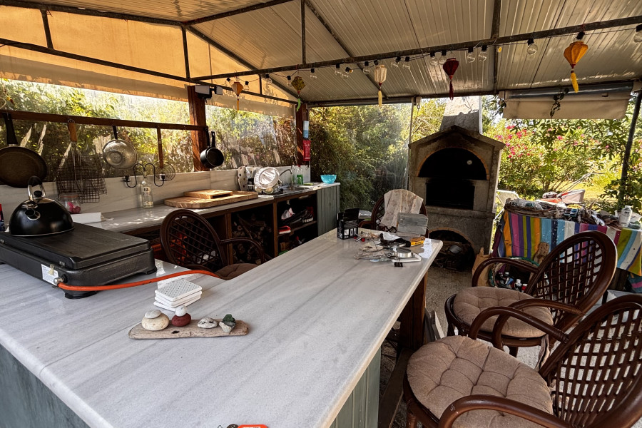 - Spacious, partially landscaped and natural garden with a variety of plants, including numerous fruit and olive trees