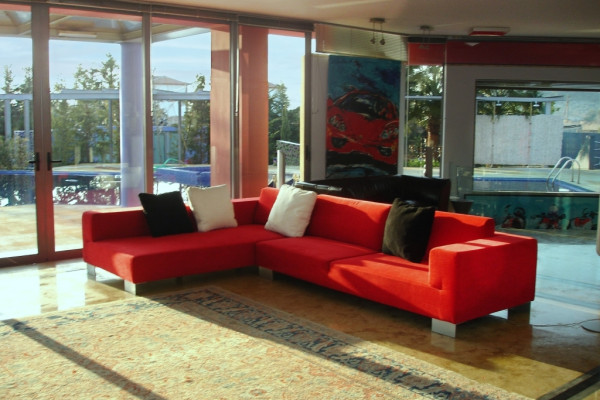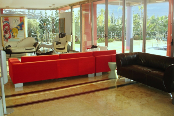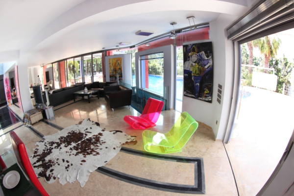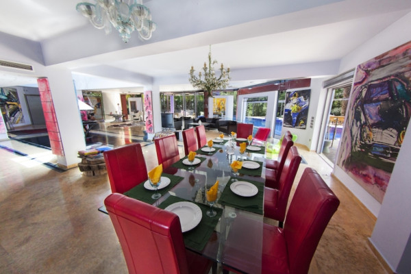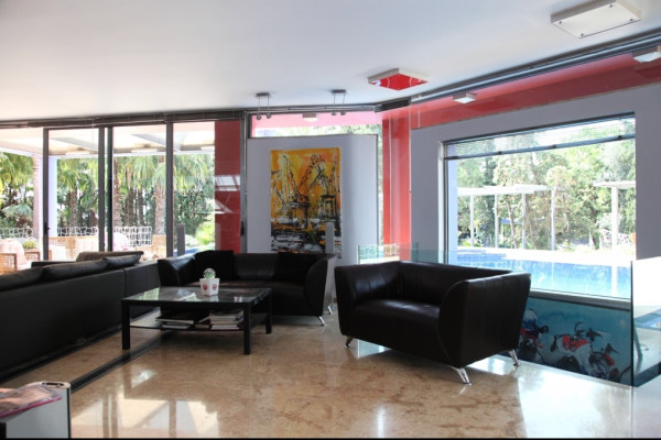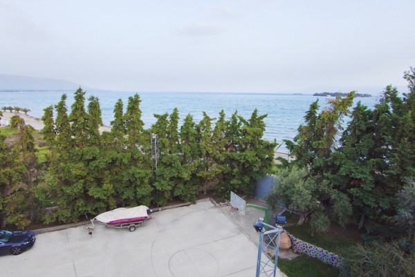 Stunning 620 sq.m. beachfront villa for sale on a 4,000 sq.m. plot in Eretria, with direct access to the sea. The property spans 3 levels with an elevator and features a total of 5 bedrooms, including 3 split-level suites on the top floor and 2 additional en-suite bedrooms on the playroom level. It also includes an independent 42 sq.m. guest house, an impressive garden with a swimming pool, a basketball court, and unobstructed views of the Euboean Gulf. Price: €2,800,000.