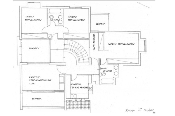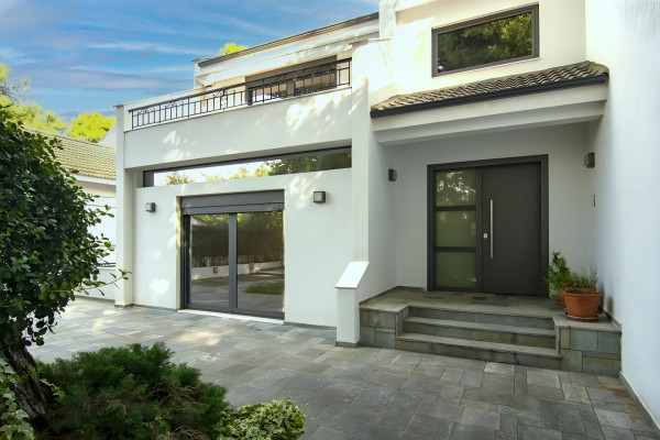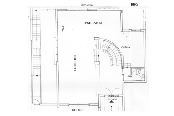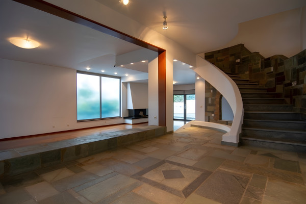 For Sale: Detached house in Kastrí with 290 sqm main spaces and 110 sqm auxiliary areas, fully renovated in 2015, featuring three bedrooms on the upper level, spacious living areas, two kitchens, an independent lower floor with garden access and potential for extra rooms and bathrooms. Price €1,150,000.