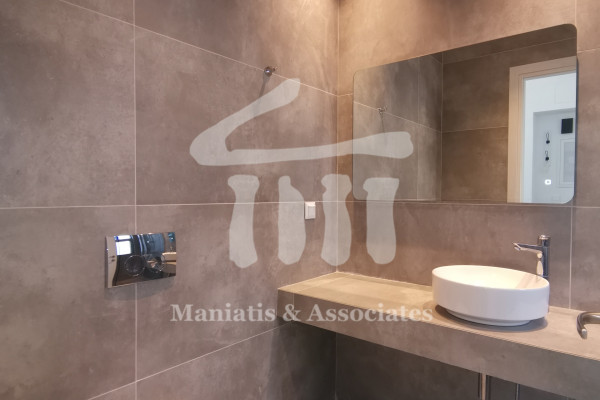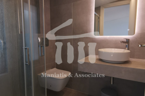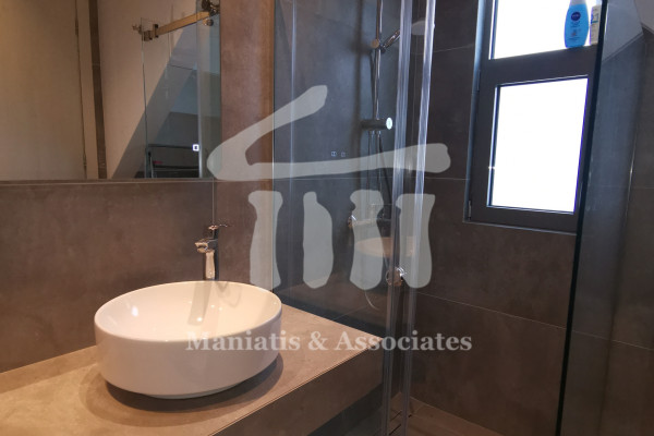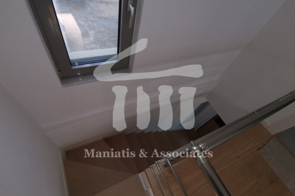 For Sale, Voula - Panorama, Newly built maisonette in Panorama of Voula with a total area of 67 sq.m. 2nd and 3rd floor consisting of 1 Master bedroom in the Attic 1 Bathroom 1 WC. It has an open plan living room with kitchen, it is of special minimal construction, for heating and cooling a fan-coilCoil system is used, pre-installation of alarm, energy frames A + Wooden floors everywhere, it has a Veranda with unlimited and unobstructed sea view. Warehouse 6sq.m. A ground floor closed parking space. PRICE: €435,000 Maniatis & Associates - tel: 2104227143 -