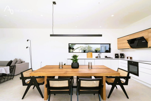 The house offers two alternative outdoor seating areas (one in front of the living room and another in the BBQ area next to the pool).