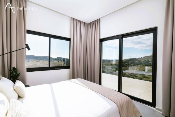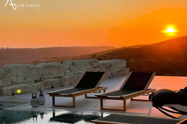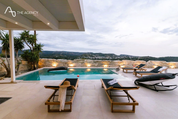 This stunning private villa is built on a hill in a quiet location with views of the sea and the mountains. Close to the beaches of Kommos and Matala.