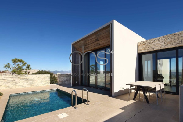 Villa for Sale, Floor: Ground Floor, 1st (2 levels), in trachoni. The Villa is 147 sq.m. and it is located on a plot of 470 sq.m .. it consumption of: 3 Bedrooms (3 Master), 3 Bathrooms, 1 WC, 1 Kitchens, 1 Living Rooms and Itso Has 2 Parkings (2 Closed). The Property Was Built in 2024. Its Heating is Personal With Heat Pump, Air Conditioning, Solar Water System, Sound Insulation, Thermal Insulation Are also Avalable, IT Has Alluminum, Thermal Brakes with Doulkes with Double Glazed Windows, The Energy Certificate is: A and Its Floors Are Tiles, Laminate. The Property's Status is: New Development, Under Construction, It Has Nature, Openness View. The Villa is Sunny, Airy, Ramp / Wheelchair Access, Luxury, Storage, Internal Staircase, Swimming Pool, Garden, Security Door, BBQ, Automatic Watering, Grass, Trees, Quiet Neighborhood, Smart Home, Internal Yard. Price: € 1,080,000. QHS Real Estate & Construction SMPC, Contact Phone: +302110048262, +306982786446, email: