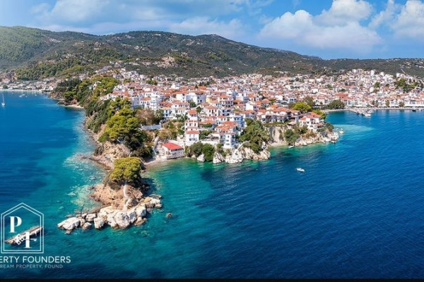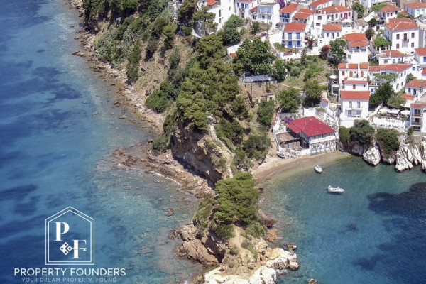 For Sale Plot, Sporades-Skiathos, Main town - Chora, 264 sq.m., Status: Amazing, Feautures: For development, For Investment, Roadside, On Corner, Flat, For tourist use, Building Factor: 1,4, View: Sea view, In City plans, For Homes development, Distance from: Airport (m): 4000, Seaside (m): 100, Price: 800.000€
