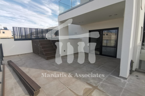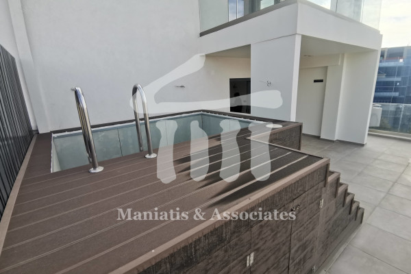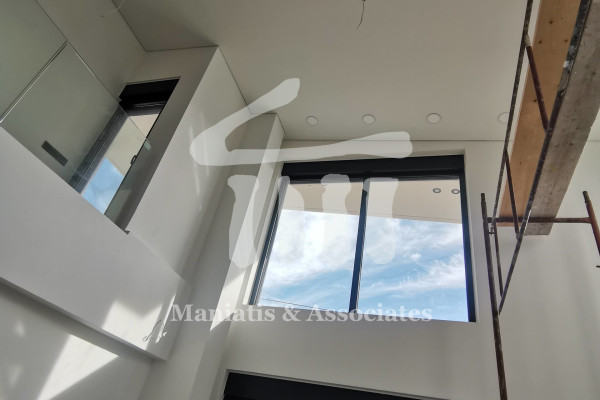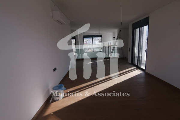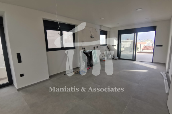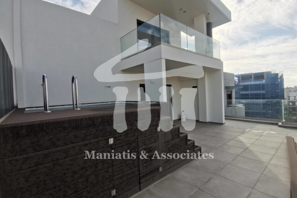 For sale. Greek. Maisonette of 2022, 4th floor, 135 sq.m. with 3 bedrooms This is a fourth-fifth floor maisonette, penthouse with a total area of 135 square meters, built in 2022 with excellent materials. Close to the Hellinikon metro station and the local market. The maisonette consists of two levels, 2 bedrooms, with the possibility of a 3rd, two bathrooms, a single living room with the kitchen. It also has a swimming pool, an energy fireplace, a large warehouse, a parking space in the basement, a security door, energy frames. It is front-facing, bright, airy. It has open spaces, large balconies with mountain and sea views. , PRICE: €690,000 Maniatis & Associates - tel: 2104227143 -