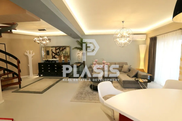 Maisonette For sale, floor: 3rd, 4th (2 Levels), in Ampelokipoi - Pentagon. The Maisonette is 130 sq.m.. It consists of: 3 bedrooms (1 Master), 2 bathrooms, 1 wc, 1 kitchens, 1 living rooms and it also has 1 parkings (1 Underground). The property was built in 1978. Its heating is Autonomous with Electricity, Air conditioning are also available, it has Aluminum frames with Double glazed windows, the energy certificate is: C and its floors are Tiles. The property's status is: Renovated, it has Unobstructed view and it has East meridian orientation. The Maisonette is Painted, Furnished, Penthouse, With Facade, Bright, Luxury, it is suitable for Investment, Revenue source, Embassy and it also has the following unique features and advantages: Window Screens, Tents, Elevator, Electric Appliances, Energy fireplace, Storage, Internal staircase, Security door, Security alarm, Internet, Night stream, Quiet neighborhood, Electric shutters. Price: €550,000. Plasis Real Estate Syntagma, contact phone: 2103224225, email: