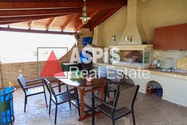 ID.1676195 - Villa For Sale in the Oropos area. It consists of 3 Levels: Ground floor 96 sq.m., 1st & 2nd 192 sq.m. as a maisonette. In more detail, the ground floor has an open space living room & kitchen, 3 bedrooms, 1 bathroom with shower, large & new air conditioning. The 1st floor of the maisonette has living room - kitchen, separate space for living room - dining room, 1 WC, wardrobe. On the 2nd floor there are 2 large bedrooms with spacious closets, 1 office/living room with large closet, 1 bathroom with bathtub and shower, laundry room with storage cabinets. It has central heating, with autonomy per floor. There are also 3 storage spaces at the back of the house 1) storage-staircase 2) small storage 3) large storage and space for wood for the fireplace. It is located on a plot of 800 sq.m. with a yard, garden, lawn and trees, parking spaces for at least two cars, a 30 sq.m. BBQ, stone-built with oven, grill, cabinets, sink, refrigerator space, TV and internet, storage room and bathroom with shower. It has an amazing, panoramic view of the Evian Gulf (mountain & sea). The property is New development, Bright, Airy, Luxury, it is suitable for Holiday home, Investment, Revenue source, 680 Meters from the sea. Aspis Real Estate Chalkidas, contact phone: 2221303681, email: