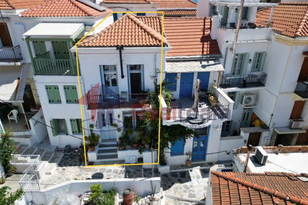 For sale is a two-storey stone detached house with a total area of 77 sq.m. on a plot of 43 sq.m. in Skopelos town. This is a property built before 1955 and renovated in 2020. The property has paved access. It is located in the settlement of the island just 300 meters from the market of Skopelos and the center. It is very close to health shops and the port. It is located 100 meters from Mylos square and the Venetian castle where there is parking. It is 500 meters from the nearest beach of Agios Konstantinos and 37 km from Skiathos airport. The orientation of the property is Northeast.