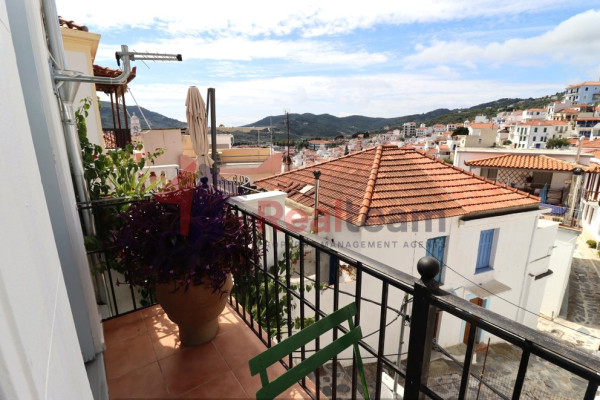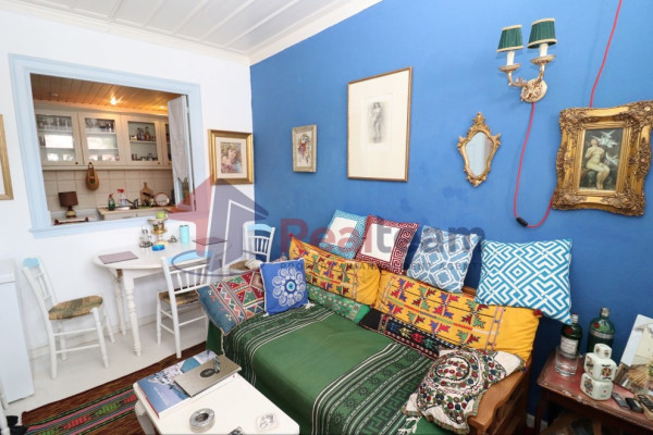 Upon entering the property we encounter a hallway that leads to the first floor with a wooden staircase and to the right of the hallway we are led to the first living room which is separated by a small wall from the kitchen and bathroom. Going up to the first floor on the left is a bedroom and straight ahead another spacious living room. From the living room we are led to a beautiful balcony with a view of the urban landscape. The property uses a wood stove, the floors are wooden and tiled and the wooden frames with screens.