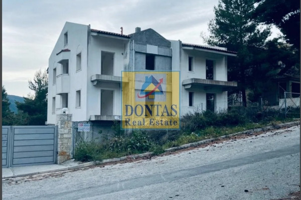 Detached House For Sale, floor: Ground Floor, 1st, 2nd, 3rd (4 Levels), in the area: Dionysos. The area of the property is 735 sq.m. and is located on a plot of 823 sq.m. Available for sale Unfinished house, with a total area of 735 sq.m., which is developed within a plot of area of 823 sq.m.. the dimensions of the plot (front: 23m., rear view: 19.5m., side view: 38m.) recommend the existence of a large yard. It is estimated that the building has been completed by 60%, as it has been plastered, thus allowing possible interventions, in line with the preferences of the buyer., The residence consists of: 3 Floor apartments of 164 sq.m., including 3 bedrooms, 1 bathroom, 1 WC, 1 kitchen, 1 living room and 1 sitting room, each. and an Independent Loft, 79 sq.m., which consists of 2 rooms with a view, 1 bathroom, 1 bright living room, as well as infrastructure for possible kitchen construction. and Basement, 164 sq.m., which includes 3 warehouses, as well as a parking space. Finally, the initial building permit was issued in 2004 and renewed in 2008 until the construction was completed. The Listed Price Refers to the Sale of the Entire Building in its EXISTING Condition., It has unlimited views, large terraces, the possibility of building a swimming pool. The photos are in its actual form and some proposed plans for finished. It consists of: 11 bedrooms, 4 bathrooms, 3 toilets. It was built in 2008, energy certificate: C. Its condition is: Unfinished, it has a Mountain view. The property is Frontage and also has the following features and advantages: Elevator, Storage, Attic, Pool, Garden, Pets Allowed. Price: €590,000. Dontas Real Estate, Contact Phone: 2106231555, Mob: 6980502020, email: