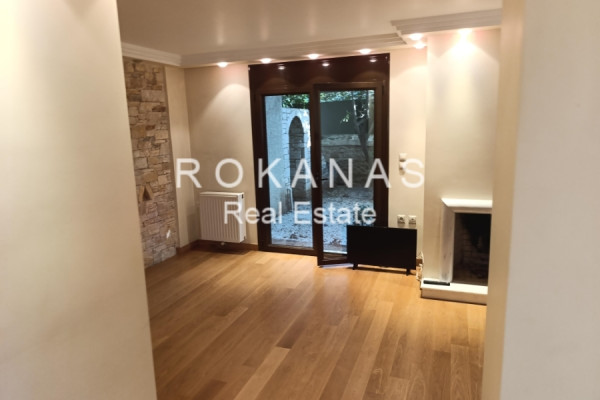 For Rent Apartment, Kifissia, Strofili, 120 sq.m., In plot 210 sq.m., Ground floor Floor, 3 Bedrooms, 1 Bathrooms, 1 WC, 1 Κitchen/s, 1 Fireplace, Floors: Wooden floors + Marble, Frames: Aluminum, 1 parking, Building Year: 2011, Certificate Energy: C, Feautures: Security door, CCTV, Fireplace, Electric Appliances, Double Glazed Windows, Balconies, BBQ, Furnished, Luxury, Airy, Roadside, Bright, Trees, Back yard (Garden), Painted, Renovated, Central - Natural Gas Heating, Price: 1.800€