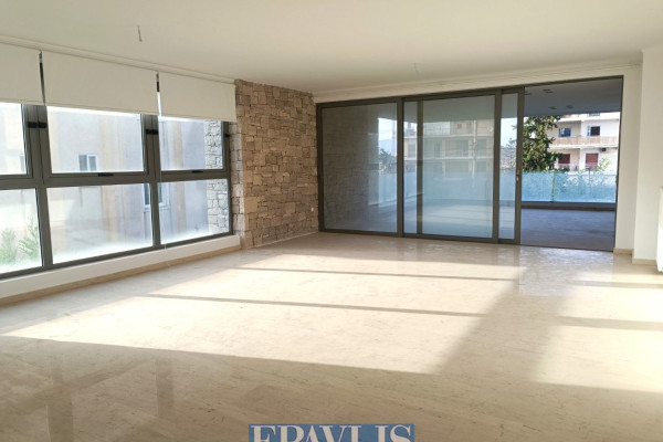 Byronas, Kareas, luxury apartment 135sq.m., 2nd floor, in a three-story stone-built apartment building, high aesthetic, built in 2011, within a plot of 1123sq.m.. Frontage, bright, airy, with an open view, in excellent condition, has not been inhabited until now. It consists of a living room, 3 bedrooms, additional room for laundry and internal storage, independent kitchen, 2 bathrooms, with all rooms on a terrace. It has 2 underground parking spaces of 12.16 sq.m. each, basement storage 6.75 sq.m. and internal storage, front porch 34 sq.m., rear porch 14 sq.m., heat-switched aluminum frames with double glazing, floors and Ioannina marble, autonomous oil heating, video door entry, night electricity, elevator. With direct access to Katehaki Street and Attiki Odos, close to transport, schools, market, restaurants. Price: €480,000. EPAVLIS REAL ESTATE AGENTS, Contact Phone: 2109945719, email: