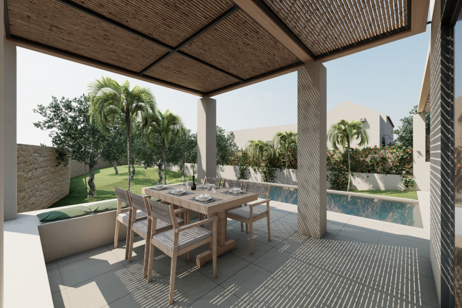 This is an amazing residence for sale in Apokoronas, Chania Crete, located in the lively village of Vamos. It has a total living space of 84 m², sitting on a 608 m² private plot. It is developed on a single level, and it consists of 2 bedrooms and 2 bathrooms. There is an open-plan kitchen with a dining area and a living room, featuring large balcony doors providing direct access to the pergola-covered area and the swimming pool. Additionally, it offers a storage room and 2 bedrooms with their own bathrooms, with one having access outside to the pergola-covered dining area. Furthermore, it has a landscaped garden, a parking area for two cars, and a private swimming pool with a sunbathing area. The property also includes a fireplace, as well as infrastructure for a boiler and central heating system, offering the option for comfortable year-round living. It is really close to all kinds of amenities such as taverns, cafes, and a mini-market in the village. It is also close to the national road, which makes both the cities of Chania and Rethymno easily accessible. 12IX2025