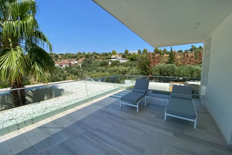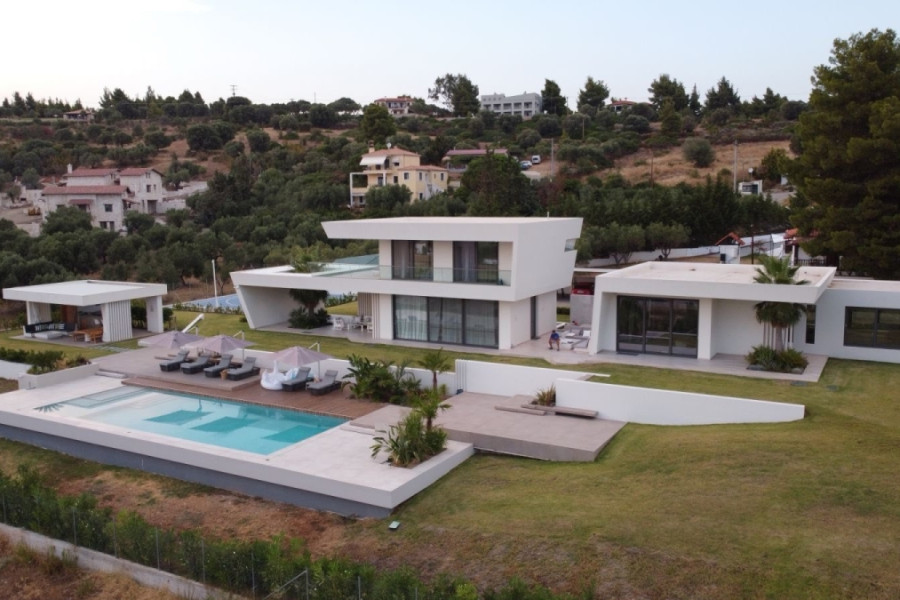 WHY THIS PROPERTY This villa combines outstanding contemporary architecture, a spacious plot with panoramic views, and is ready for immediate occupancy. Two independent buildings create unique flexibility in the use of space. Ideal for families seeking a permanent residence with a separate guest area, or for investors considering renting part of the complex. Compliance with Golden Visa requirements opens the way to EU residency for the whole family. The Kalogria area shows a steady demand for premium properties. Contact