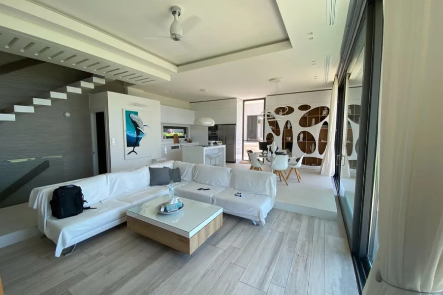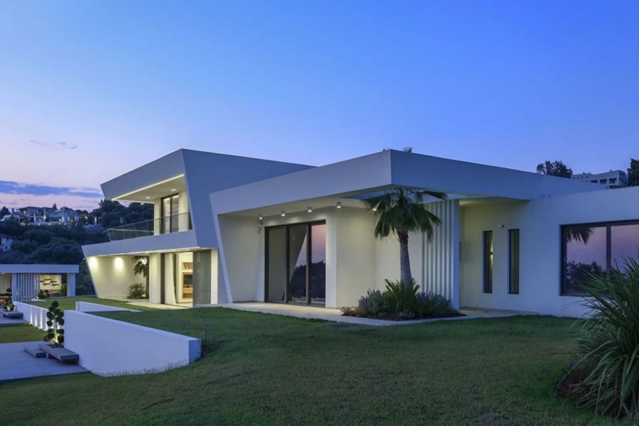 ARCHITECTURE AND DESIGN The villa, built in 2016, is an example of modern minimalist architecture with an emphasis on functionality and integration with the landscape. Two independent buildings on a 4,000 sq.m. plot create private areas for family and guests, connected by a shared landscape and pool area. The main building is a three-level structure with clean geometric shapes, panoramic glazing, and terraces on each level. The guest house is a two-level building with a separate entrance. Aluminum window systems with double glazing, glass railings on the terraces, energy-efficient materials, and a security entrance door. The interior architecture harmoniously complements the exterior thanks to special designs and architectural elements.