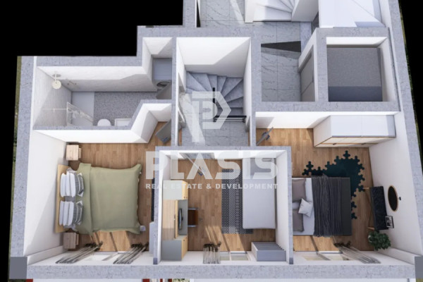 Luxury maisonette for sale, 142 sq.m. in total and 100 sq.m. completely under construction, on the 5th floor of an impressive, modern building, in a prime location in Evosmos. The southeast oriented residence combines functionality, high aesthetics and direct access to an organized market, parks, playgrounds and public transport.