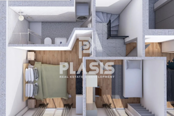 Maisonette For Sale, floor: 5th, 6th (2 Levels), in the area: Evosmos - Evosmos. The area of the property is 123 sq.m. and is located on a plot of 230 sq.m. It consists of: 3 bedrooms, 2 bathroom(s), 1 kitchen(s), 1 living room(s), while it has 1 parking spaces (1 in an open area). It was built in 2024. The heating of the property is autonomous with natural gas, while air conditioning is also available, solar, it has synthetic frames with double-energy glasses, energy certificate: A and the floors are: Tiles, Laminate. Its status is: Under construction, it is located near Transportation, Park, Super Market, Market, it has a view of the Sea, Openness, Good, Panoramic and it has a Southeast orientation. The property is Painted, Penthouse, Front, Bright, Airy, Disabled Access/Ramp, Luxury, Suitable for Investment, Income and also has the following features and benefits: Screens, Awnings, Lift, Storage, Internal staircase, Security Door, CCTV, Pets Allowed, Fiber Optic, Terrace, Drainage.