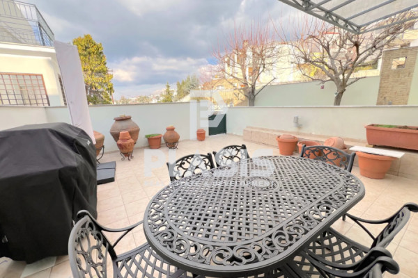 Three-level corner maisonette with basement and attic for sale in Panorama, in the settlement of Law 751, with a total area of 366 sq.m. Built in 2000 and barely inhabited by the owners, the house is in excellent condition and can be occupied immediately without the need for work. On the ground floor there is an independent apartment with a kitchen, a living room with a fireplace, two rooms and a bathroom, while the second entrance makes it easily independent. The main living room, with the fireplace on the second level, is the center of the family and has a semi-detached kitchen with plenty of storage space and access to a 30 sq.m. balcony, offering wonderful views and plenty of natural light. In the night area there are three spacious bedrooms with 1 bathroom and three wardrobes, while the attic with sufficient height offers a single space ideal for an office, playroom or extra room. The basement is an excellent storage space, without any humidity.
