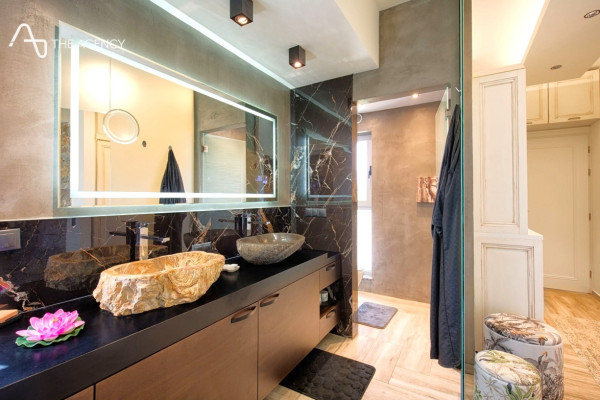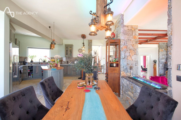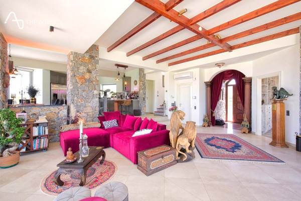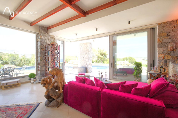 The villa is offered partially furnished (decorative items by arrangement), has a home cinema, battery powered photovoltaic system, underfloor heating and air conditioning.