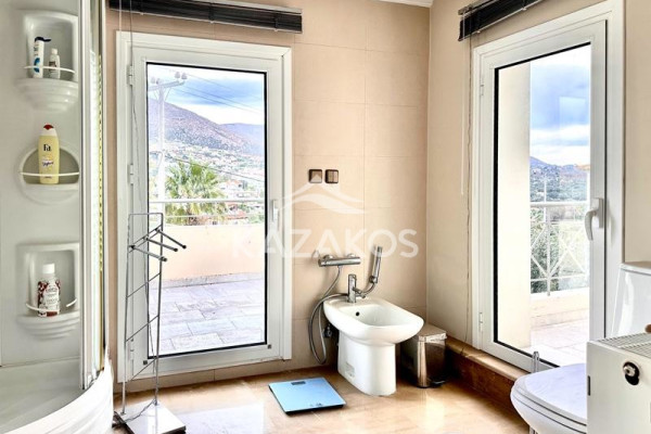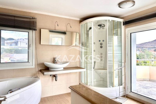 Villa For Sale, floor: Ground floor, 1st, 2nd (3 Levels), in the area: Kalyvia Thorikou. The area of the property is 300 sq.m. and is located on a plot of 900 sq.m. It consists of: 3 bedrooms (1 Master), 2 bathroom/s, 1 kitchen/s, 1 living room/s, while it has 4 parking spaces (4 in open space). It was built in 2004. The heating of the property is Autonomous with Oil, while also available Heating per level, Air Conditioning, Solar, Radiator, it has Aluminum frames with Double-Energy glazing, energy certificate: C and the floors are: Tiles, Granite. Its condition is: Very good, it has a view of the Sea, Openness, Unobstructed. The property is Furnished, Bright, Free Everywhere, Luxurious and also has the following features and advantages: Screens, Elevator, Electric. Appliances, Indoor Staircase, Swimming Pool, Garden, Security Door, CCTV, Alarm, Security Cameras, Fire Suppression System, Indoor Lift, Gym. Price: €870,000. Kazakos Real Estate, Contact Phone: 2114039210, email: