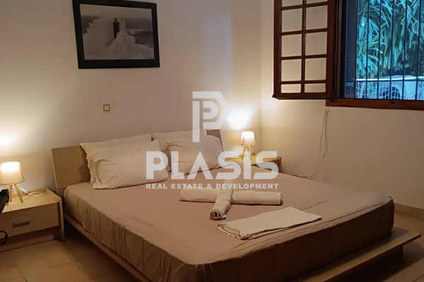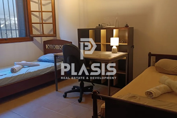 Apartment For rent, floor: Ground floor, in Kifissia - Politeia. The Apartment is 90 sq.m.. It consists of: 2 bedrooms, 1 bathrooms, 1 kitchens, 1 living rooms and it also has 1 parkings (1 Open). The property was built in 1985 and it was renovated in 2010. Its heating is Personal with Natural gas, it has Aluminum frames with Double glazed windows, the energy certificate is: A and its floors are Tiles. The property's status is: Renovated, Very good condition, it is close to Park, School, Square, Public market, Super Market, City Center, Entertainment centers, it has Public square, Park, Nature, Openness view and it has East meridian orientation. The Apartment is Furnished, Bright, Airy, Sunny, Stone house, it is suitable for Holiday home, University Students, Storage, Garden, Security door, BBQ, Night stream, Porch, Drains. Price: €1,200. Plasis Real Estate Syntagma, contact phone: 2103224225, email: