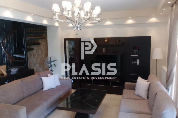 For rent, ultra-luxurious maisonette of 160 sq.m. in New Switzerland, just a 5-minute walk from the metro station. It is in an excellent location, next to a park, schools of all levels, supermarket, gym, doctors and a multitude of daily services.