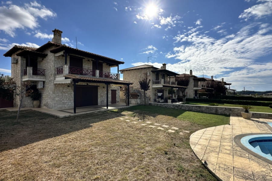 Property Code: HPS5502 - House FOR SALE in Kassandra Nea Fokaia for € 450.000 . This 125.00 sq. m. furnished House consists of 2 levels and features 3 Bedrooms, an open-plan kitchen/living room, 2 bathrooms . The property also boasts Heating system: Individual - Petrol, tiled floor, view of the Sea, Window frames: Aluminium, Security door, a storage unit 12 sq.m. sqm, garden, fireplace, swimming pool, A/C, alarm system, electrical appliances, awnings, insect screens, double-glazed windows, solar-powered water heater, BBQ, ceramic roof, satellite dish, open space, internal staircase. The building was constructed in 2010 Plot area: 1000 s.q. . Building Energy Rating: C Distance from sea 1600 meters, Distance from the city center: 79000 meters, Distance from nearest village: 1300 meters, Distance from nearest airport: 69700 meters, Stone cottage with sea view in a modern complex next to Nea Fokea, Halkidiki, where there are all amenities: supermarkets, cafes, taverns, shops, pharmacy. There is a regular bus connection to other areas and the city of Thessaloniki.The western peninsula of Halkidiki, Kassandra, in addition to its magnificent beaches, is famous for its excellent hotels and popular tourist villages with vibrant nightlife, many shops and fish restaurants. There is something here to entertain both young people and families with children. The width of the peninsula is only 15 km, but the coastline with snow-white beaches stretches for 50 km. You can relax on well-maintained beaches with beach bars, many awarded blue flags for cleanliness, and wildlife lovers can look for secluded bays where they can go diving. The peninsula is washed from the west by the Thermal Gulf, where the sea is open, with winds, convenient for wind surfing, but the east coast, washed by the waters of Toroneos, with sandy beaches and a smooth entrance to the sea, is convenient for children.