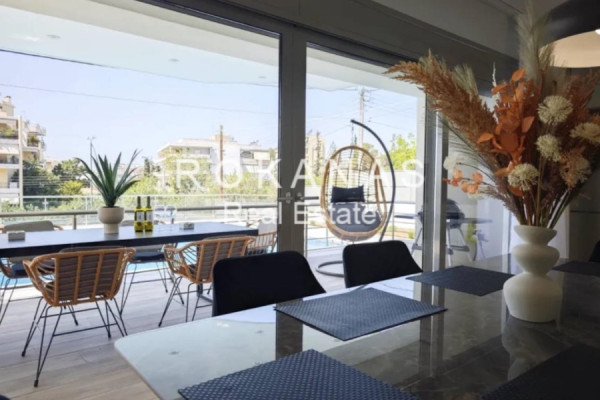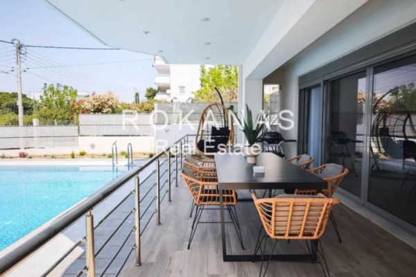 For Rent Maisonette, Voula, Kalymniotika, 140 sq.m., In plot 600 sq.m., Ground floor Floor, 3 Bedrooms, 3 Bathrooms, 1 Κitchen/s, Frames: Aluminum, Building Year: 2018, Certificate Energy: B, Feautures: Elevator, Security door, Security alarm, CCTV, Storage room, Attic, Night stream, Electric Appliances, Playroom, Internal Staircase, Double Glazed Windows, Balconies, Furnished, Luxury, Airy, Roadside, Bright, AirConditioning, Solar water system, Swimming pool, Back yard (Garden), New Construction, Autonomous - Fan Coil Heating, Price: 3.600€