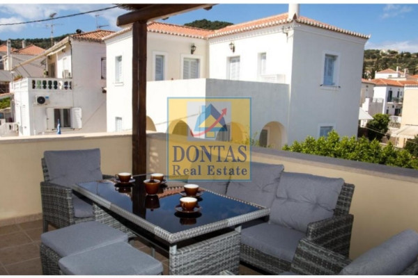 Spetses, Monastery of All Saints, Detached House, 220 sq.m., On a plot of 220 sq.m., 3 Level(s), 3 Bedrooms, 3 Bathroom(s), 1 WC, 2 Kitchen(s), Year of Construction 2006, Energy Certificate: C, Features: Security Door, Storage, Internal Staircase, Double Windows, Verandas, Pets Allowed, Consists of 3 levels, the playroom is 2 self-contained apartments, one 50 sq.m, with 1 room, bathroom, living room and kitchen, and a 25 sq.m studio, (GROUND FLOOR and 1st FLOOR is a maisonette, the ground floor has 2 rooms and 1 bathroom and is connected to the 1st by an internal staircase floor where we find the living room with the living room and the fireplace, a kitchen and the guest toilet), The residence has very large terraces, Price: €800,000, Tel: 2106231555 6980502020, www.dontasrealestate.gr,