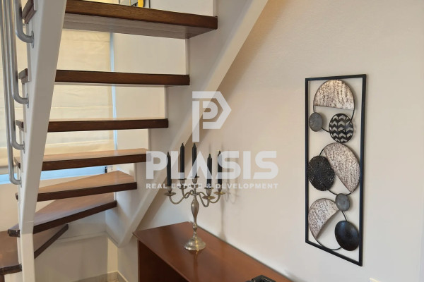Maisonette For rent, floor: 4th, 5th (2 Levels), in Glyfada - Glyfada - center. The Maisonette is 105 sq.m.. It consists of: 3 bedrooms, 1 bathrooms, 2 wc, 1 kitchens, 1 living rooms. The property was built in 2000 and it was renovated in 2025, Air conditioning are also available, it has Aluminum frames with Double glazed windows, the energy certificate is: C and its floors are Tiles. The property's status is: Renovated, Excellent condition, it is close to Tram, Transportation, Park, Sea, Seaside, School, Square, Mall, Local market, it has Park, Sea, Openness, Unobstructed view. The Maisonette is Painted, Furnished, Penthouse, With Facade, Bright, Airy, Sunny, Luxury and it also has the following unique features and advantages: Window Screens, Tents, Elevator, Electric Appliances, Storage, Internal staircase, Garden, Security door, CCTV, No shared expenses. Price: €1,900. Plasis Real Estate Glyfada, contact phone: 2109601909, email: