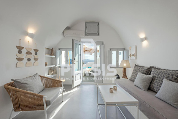 Property for sale with a total area of 82 sq.m. on a plot of 64 sq.m., built in a privileged location on the caldera of Oia, a short distance from the emblematic castle of Oia. The property consists of two independent houses, 36.4 sq.m. and 45.6 sq.m. respectively, each of which has a bedroom, a bathroom, kitchenette, living room, as well as a private outdoor area with a covered jacuzzi, offering complete privacy and unobstructed views of the volcano and caldera. The property operates as a fully licensed tourist accommodation, offering stable yields and high investment interest. There is also an underground storage room. It dates back to 1985 and is systematically maintained with annual renovations, with the most recent completed in 2025. This is a rare investment opportunity in one of the most sought after and photographed spots in the Mediterranean. Plasis Real Estate Glyfada, Contact Phone: 2109601909, email: