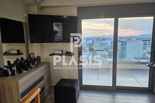 Apartment For sale, floor: 8th, 9th (2 Levels), in Neos Kosmos. The Apartment is 89 sq.m.. It consists of: 3 bedrooms, 2 bathrooms, 1 kitchens, 1 living rooms and it also has 2 parkings (2 Open). The property was built in 2022. Its heating is Autonomous with Natural gas, Air conditioning, Solar water system, Radiator are also available, it has Aluminum frames with Double glazed windows, the energy certificate is: B and its floors are Tiles. The property's status is: New development, Excellent condition, it is close to Metro, Transportation, Park, Super Market, Cafe/Restaurants, Local market, it has Public square, Park, Panoramic, Unobstructed, City views view. The Apartment is Penthouse, With Facade, Bright, Airy, Sunny, Airy, Luxury, it is suitable for Investment and it also has the following unique features and advantages: Window Screens, Elevator, Security door, Security alarm, Internet, Night stream, Pets allowed, Porch, Electric shutters. Price: €580,000. Plasis Real Estate Syntagma, contact phone: 2103224225, email: