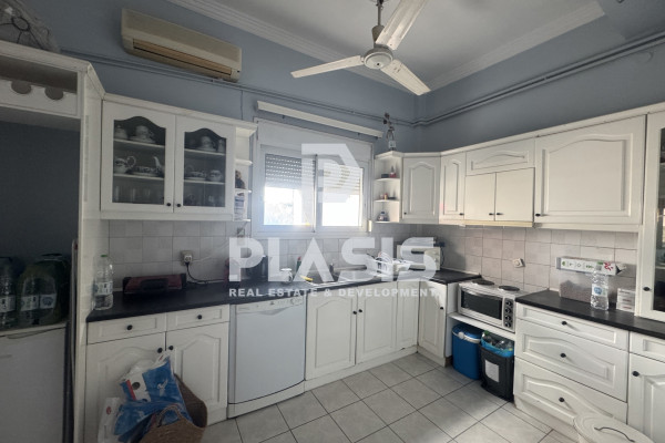 Apartment For sale in Alimos. The Apartment is 120 sq.m. and it is located on a plot of 301 sq.m.. It consists of: 3 bedrooms, 2 bathrooms, 1 wc, 2 kitchens, 1 living rooms. The property was built in 1962. Its heating is Autonomous with Oil, Solar water system, Boiler, Thermal insulation, Radiator are also available, it has Aluminum frames with Double glazed windows, the energy certificate is: F and its floors are Tiles, Mosaic. The property's status is: Needs renovation, it is close to Transportation, it has City views view and it has East orientation. The Apartment is Whole floor, With Facade, Bright, Airy, Sunny, Airy and it also has the following unique features and advantages: Tents, Storage, Porch. Price: €350,000. Plasis Real Estate Glyfada, contact phone: 2109601909, email: