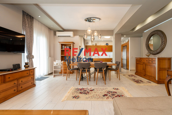 In the heart of Nea Moudania, a third-floor apartment of 95.77 sq m is available, fully and radically renovated in 2018, combining high aesthetics, modern functionality and comfort. Ideal for any family looking for a quality living space. The house has thermal insulation and insulation on the terrace, ensuring ideal living conditions throughout the year, while its interior exudes a sense of freshness, cleanliness and discreet luxury. The open-plan living-kitchen area stands out for its elegance and ergonomics, with a kitchen fully equipped with high-quality electrical appliances that cover every need of everyday life. The two bedrooms are bright, comfortable and attentive to detail, offering moments of relaxation and privacy, while the bathrooms with shower cabins combine modern design with practicality. The careful lighting, with ceiling lights and hidden lighting, highlights the modern architecture and creates a pleasant atmosphere in every space. Comfort is fully ensured, as the apartment has a central oil boiler for heating and three air conditioners. Two in the bedrooms and one in the living room, for an ideal temperature all year round. The armored door offers increased security and enhances the feeling of intimacy from the first moment. The location is a significant advantage as you are within walking distance of the market, daily services and the sea. Thus, the buyer enjoys the ideal combination of city comfort and seaside quality of life. This is a property that meets all the requirements for a comfortable, safe and enjoyable family living, making it an excellent choice for both permanent residence and holiday use. It is equipped with electric awnings, 3 air conditioners, screens, alarm system, security cameras.