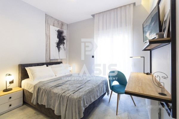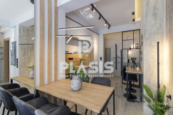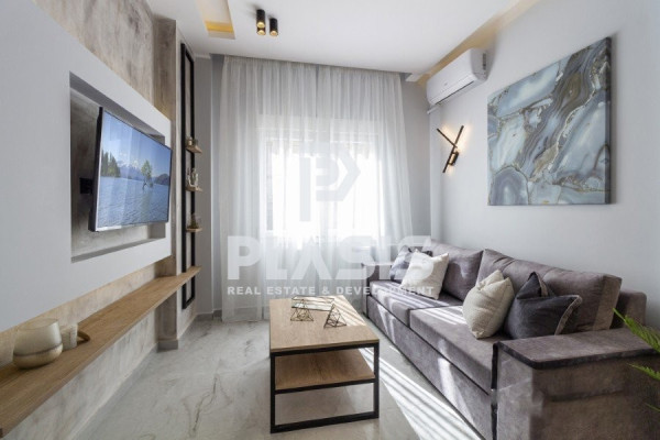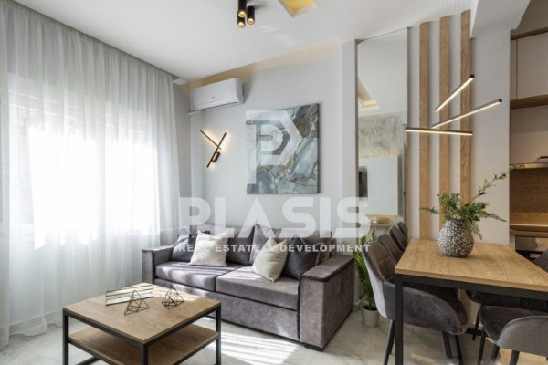 Apartment For rent, floor: 2nd, in Center of Thessaloniki - Kamara. The Apartment is 50 sq.m.. It consists of: 2 bedrooms, 1 bathrooms, 1 kitchens, 1 living rooms. Its heating is Personal with Natural gas, Air conditioning are also available, it has Synthetic frames with Double glazed windows, the energy certificate is: D and its floors are Tiles. The property's status is: Renovated, Freshly painted, Excellent condition, it is close to Metro, Transportation, Square, Church, Cafe/Restaurants, Local market, it has City views view. The Apartment is Furnished, With Facade, Bright, Luxury, it is suitable for University Students, Co-housing and it also has the following unique features and advantages: Elevator, Security door, Porch, Drains. Price: €1,100. Plasis Real Estate Glyfada, contact phone: 2109601909, email: