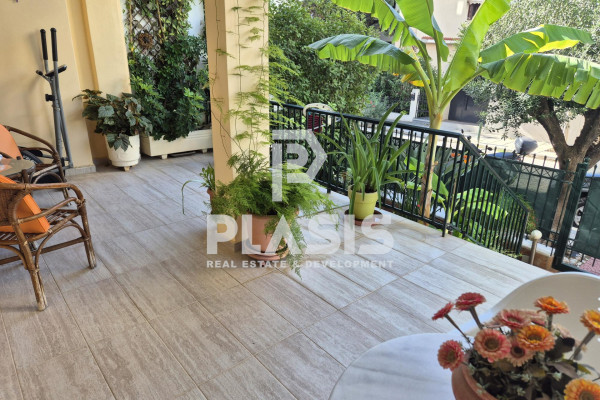 Apartment For rent, floor: Basement, Ground floor (2 Levels), in Alimos - Center. The Apartment is 100 sq.m.. It consists of: 2 bedrooms, 1 bathrooms, 1 kitchens, 1 living rooms. The property was built in 1975. Its heating is Personal with Natural gas, Air conditioning are also available, it has Aluminum frames with Double glazed windows, the energy certificate is: D and its floors are Marble, Mosaic. The property's status is: Very good condition, it is close to Transportation, Park, Sea, School, Square, Church, Kindergarten, Public market, Super Market, Mall, City Center, Entertainment centers, Cafe/Restaurants, Local market, it has City views view. The Apartment is Furnished, With Facade, Bright, Airy, Sunny, Airy and it also has the following unique features and advantages: Tents, Electric Appliances, Garden, Trees, Pets allowed, Quiet neighborhood, Electric shutters. Price: €800. Plasis Real Estate Glyfada, contact phone: 2109601909, email: