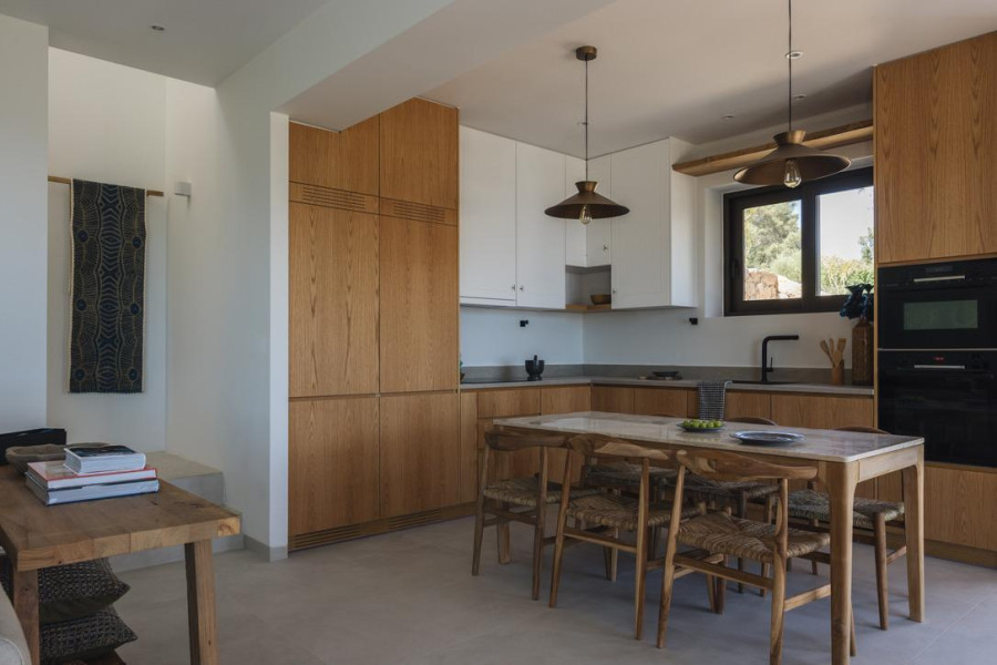 Co-Ownership in Poros, Lefkada – Luxury Villa Perched majestically above the serene bay of Mikros Gialos, this luxury villa offers an unparalleled living experience with its refined architecture, panoramic views, and elegant design. With a total indoor living space of 191 m² and a generous plot size of 4,112 m², the residence combines investment value with the charm of authentic island living. The villa features underfloor heating and cooling in the main house. Spanning two levels, it features four spacious bedrooms, each with its own private bathroom, plus an additional outdoor WC in the pool area, ensuring absolute comfort and privacy for families or groups of friends.