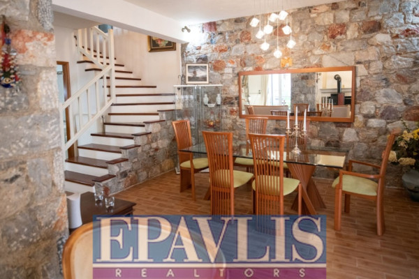 Detached House For Sale in the area: Skopelos. Detached house 240 sq.m. in a settlement with a very good sea view. It is developed on three levels that communicate with each other with an internal staircase. The ground floor consists of a living-dining room with a fireplace, a kitchen and a bathroom with a hydromassage. The 1st floor has 3 bedrooms, a bathroom, 2 terraces with a sea view and the attic, which can be used as a guest apartment, consists of 2 bedrooms, a bathroom, a small kitchen, a storage room and a terrace with a very good sea view. The house has oil central heating, double glazed windows, tiling, ceiling fans, 2 a/c and bbq. in the yard. Price: €460,000. EPAVLIS ESTATE AGENTS, Contact Phone: 2109945719, email: