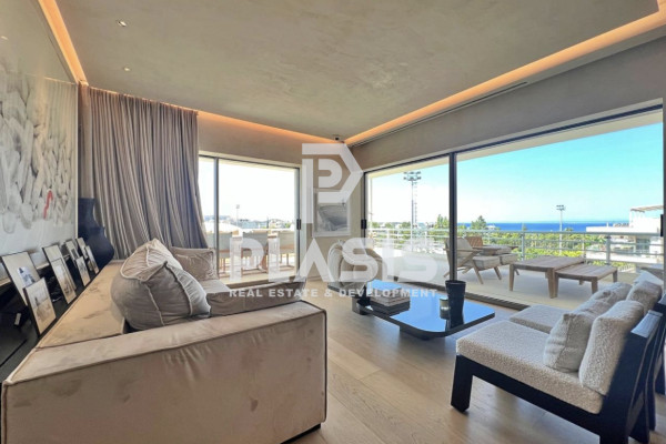 Apartment For sale, floor: 4th, in Voula - Center. The Apartment is 146 sq.m.. It consists of: 2 bedrooms (1 Master), 3 bathrooms, 1 wc, 1 kitchens, 1 living rooms and it also has 1 parkings (1 Open). The property was built in 1981 and it was renovated in 2021. Its heating is Personal with Fan coil, Underfloor heating, Heating per level, Boiler are also available, it has Aluminum frames with Triple glazed windows, the energy certificate is: A and its floors are Wooden. The property's status is: Renovated, Excellent condition, it is close to Park, Sea, 250 Meters from seaside, 15000 Meters from airport, it has Sea view. The Apartment is On Corner, With Facade, Bright, Airy, Ramp / Wheelchair access, Luxury, it is suitable for Holiday home, Investment and it also has the following unique features and advantages: Elevator, Electric Appliances, Storage, Garden, Security door, CCTV, Security alarm, Internet, Playroom, Satellite Receiver, Night stream, Trees, Pets allowed. Price: €1,050,000. Plasis Real Estate Glyfada, contact phone: 2109601909, email: