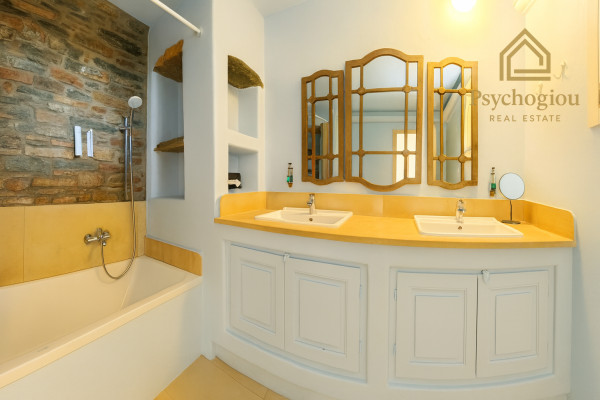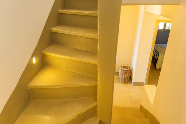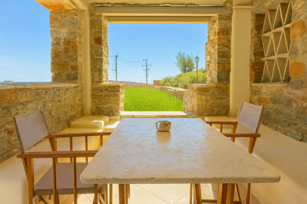 Villa C2 is the smallest, but no less charming residence. A stone two-storey villa with an emphasis on practicality and Cycladic simplicity, without a private pool but with a large garden and beautiful terraces. Ideal for couples or small families who want rest and peace.