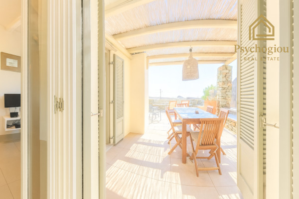 The villa is a few minutes from Tinos Town and is close to beaches such as Kionia, Agios Sostis and Agios Fokas. Taverns, cafes and a super market are 5-10 minutes away. Inland villages and more secluded beaches are easily accessible for day trips.