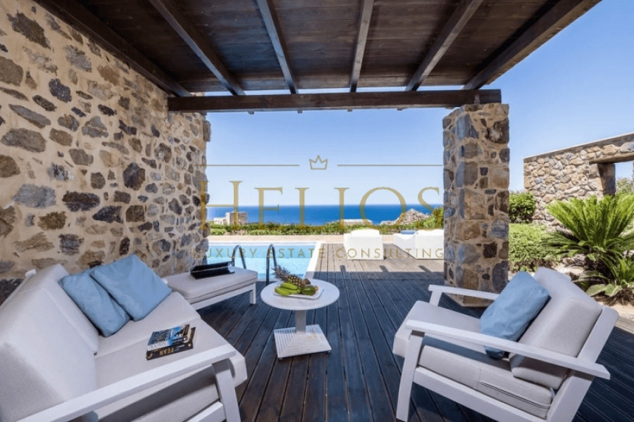 Perched on a 1,000 sq.m. private plot, surrounded by lush olive groves, the Villa sits on a gentle hillside overlooking the sea. Just a short walk from the wild, unspoiled beaches of the region, this property is a perfect blend of traditional Cretan architecture and modern elegance, built with local natural stone, round tree trunks, and clay tiles to harmonize with the landscape.