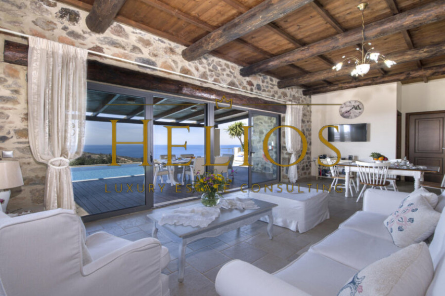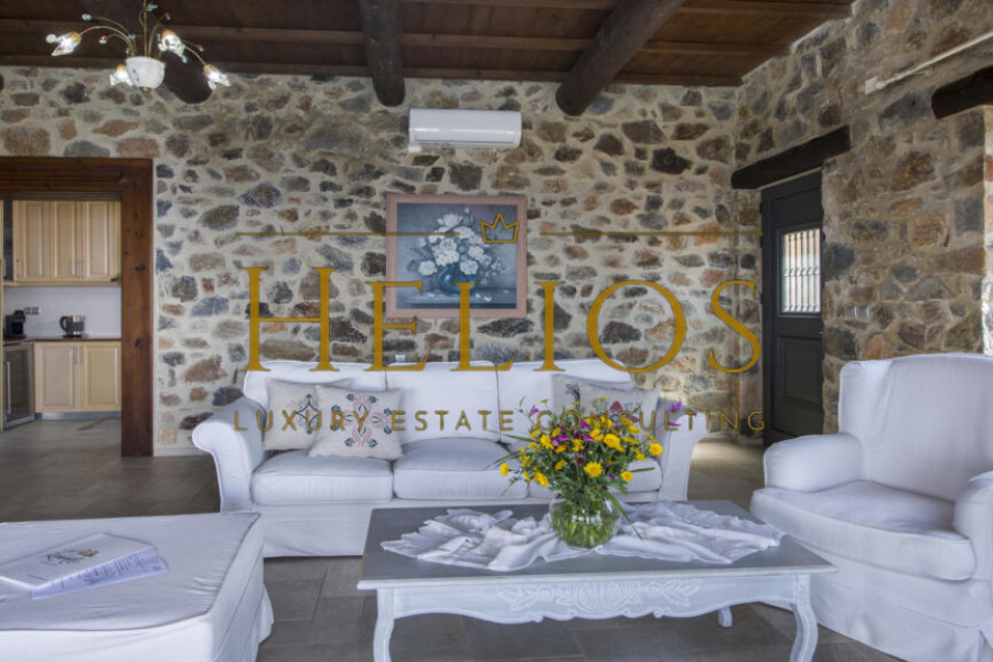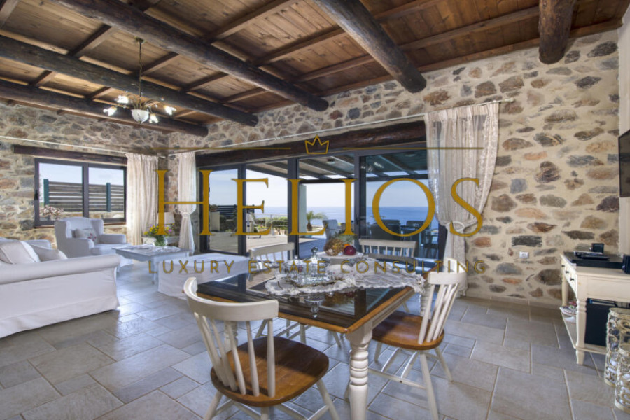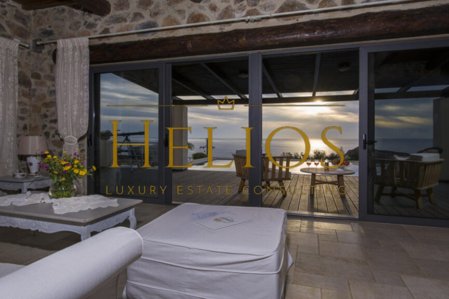 A Sanctuary of Tranquility & Natural Beauty. Designed for those who seek a harmonious blend of modern luxury and traditional charm the Villa was built with local natural stone, wooden beams, and clay tiles, evoking the grandeur of a private estate while seamlessly integrating with its surroundings. The property offers absolute privacy, panoramic sea views, and an atmosphere of exclusivity.