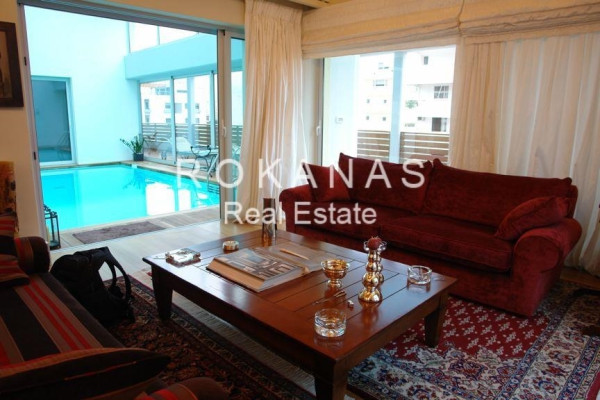 For Rent Maisonette, Glyfada, Center, 376 sq.m., In plot 850 sq.m., 2 Levels, 3rd Floor, 4 Bedrooms, (3 Master), 5 Bathrooms, 1 WC, 1 Fireplace, Floors: Wooden floors + Tiles, Frames: Aluminum, 2 parking, Building Year: 2008, Certificate Energy: C, Feautures: Elevator, Security door, Security alarm, CCTV, Storage room, Fireplace, Night stream, Electric Appliances, Playroom, Internal Staircase, Double Glazed Windows, Window Screens, Balcony Cover, Balconies, Furnished, Roadside, Bright, On Corner, AirConditioning, Solar water system, Swimming pool, New Construction, Autonomous - Natural Gas Heating, Price: 12.000€