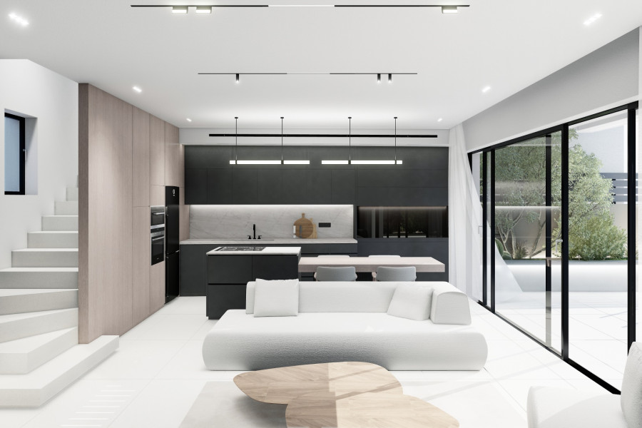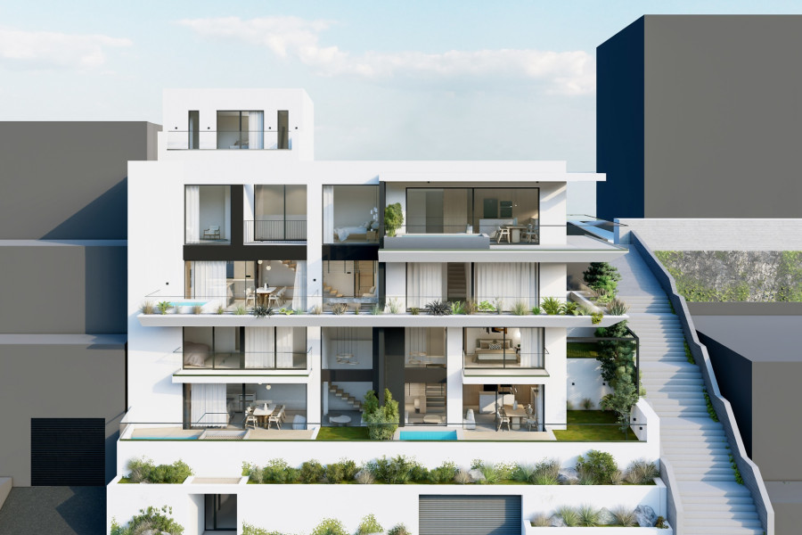 For sale in Rethymno in a building under construction of luxury maisonettes and apartments a Ground floor-1st-2nd floor Maisonette of 122,36 sqm. It consists of 2 bedrooms with their own bathrooms on the 1st (49,36 sqm), and the 2nd floor (26,85 sq.m), an open plan living room with kitchen on the ground floor (46,15 sqm). Also on the ground floor level there is a stylish garden of 49,95 sqm with a private swimming pool of 6 X 2 sqm. The Maisonette will be bright, luxurious and functional with Smart Home specifications, energy class A + with heating and cooling by heat pump, solar, double glazing, touch switches (tempered glass). Also the Maisonette will have a closed parking space and a storage room in the basement. Construction is expected to start in September 2024 and delivery is expected early in 2027.
